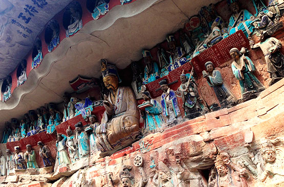 參觀【大足石刻】。是重慶市大足區境內以佛教題材為主的摩岩石刻(石窟)的總稱,是世界文化遺產和世界八大石窟之一。