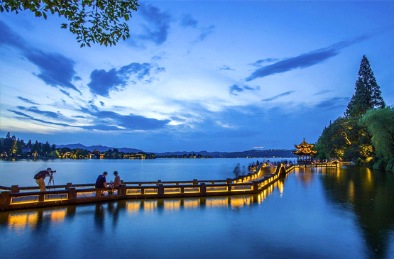 遊覽【西湖】。西湖三面雲山,沿湖地帶綠蔭環抱、山色蔥蘢,是大陸主要的觀賞性淡水湖泊之一,已被列入《世界遺產名錄》。