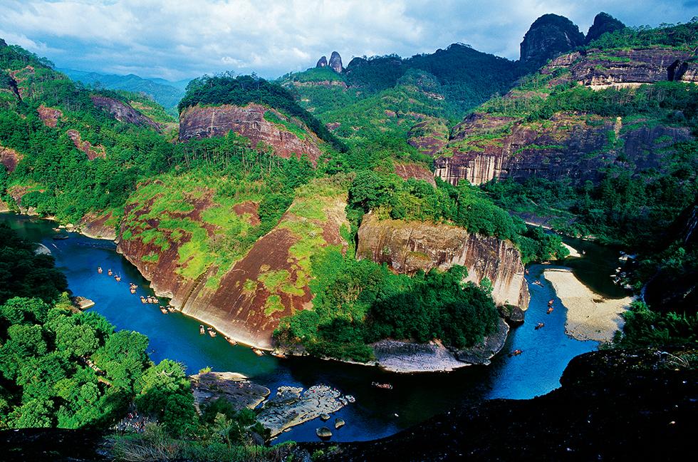 【武夷山】——擁有世界自然遺產和世界文化遺產雙重頭銜,是華東最吸引人的山水,也是福建名茶大紅袍的產地。目前,它分為武夷山自然保護區及武夷山風景名勝區。為了保護生態環境,自2010年前,自然保護區便不再對公眾開放。武夷山風景名勝區可以分為天遊峰至桃源洞、九曲溪至武夷宮、一線天至虎嘯岩、大紅袍至水簾洞四個片區。如果你只有一天時間,一般來說,天遊峰和九曲溪是首選。而對愛茶的人而言,走大紅袍至水簾洞的茶田步道則是必遊之地。