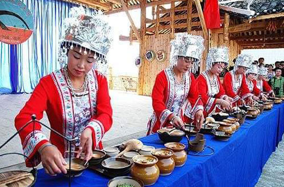 【山江苗寨】以前名“總兵營”,因為清朝鎮壓苗民起義時在此駐兵設過總兵營房。苗寨缺水,解放後在寨西北山上修了座山江水庫,於是苗寨改名叫“山江”。這個景區最特別的就是,進苗寨門前先喝攔門酒。好客的苗族阿妹會站成一排,你要喝了酒才能進寨門。