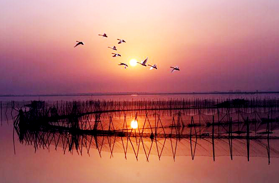 【鄱陽湖】是大陸第一大淡水湖,有三分之二的水域面積在江西九江。鄱陽湖是世界著名的鳥類保護區。每年秋末冬初,都有成千上萬只候鳥來此越冬。