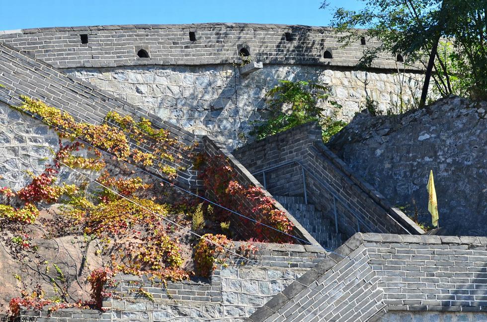 【虎山長城】始建於明成化五年(西元1469年),是中國明萬里長城的東端起點,也是大陸鴨綠江風景名勝區的一個重要景區,與朝鮮的於赤島和古城義洲隔江相望。虎山長城環境優美,是早年安東八大名景之一,這裏有長城、睡佛、虎口崖等二十八個景點,是丹東城郊絕好的旅遊勝地。這裏山川秀麗、江河清碧、氣候宜人、風景優美。臨江峭立的虎耳山,於沿江丘陵中異峰突起、險峻挺拔、怪石嶙峋,沿長城拾級而上到達峰頂,可一覽兩國風光。
