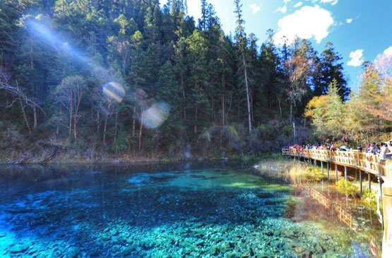 遊覽【九寨溝風景區】、【五彩池】、【原始森林】。