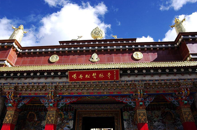 【松贊林寺】全稱噶丹松贊林寺,又名:歸化寺,是雲南地區最大的藏傳佛教寺廟,也是川滇一帶的格魯派(黃教)中心。寺廟始建於西元1679年,由五世達賴親自賜名。松贊林寺依山而建,坐北朝南,週邊築有橢圓形城垣,紮倉、吉康兩大主殿位於寺中心的最高點。