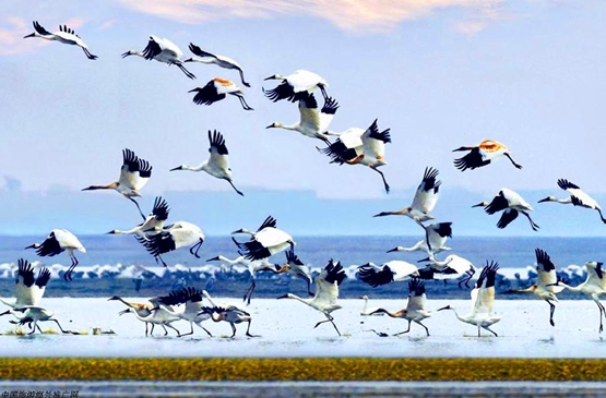 【鄱陽湖】是大陸第一大的淡水湖。在湖邊可以觀看浪潮翻騰、一望無垠的大湖景色。這裡每年10月到次年4月有近百萬隻候鳥來此過冬,可以觀鳥攝影。