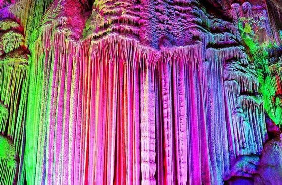 【銀子岩】是典型的喀斯特地貌,整個溶洞貫穿十二座山峰,洞內許多鐘乳石是歷經幾萬年,甚至幾十萬年長成的,讓人不得不感嘆大自然的鬼斧神工。這些天然形成的鐘乳石景觀大多以其形態命名,“三分形狀七分想像”。