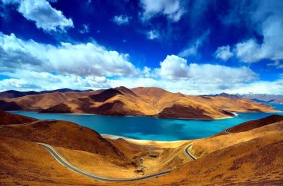 【羊卓雍措】藏語意為“碧玉湖”,與納木錯和瑪旁雍措並稱為西藏三大聖湖,距拉薩約70公里處,是喜馬拉雅山北麓最大的內陸湖泊,面積約675平方千米,海拔高4441米,湖面平靜,山色之美。