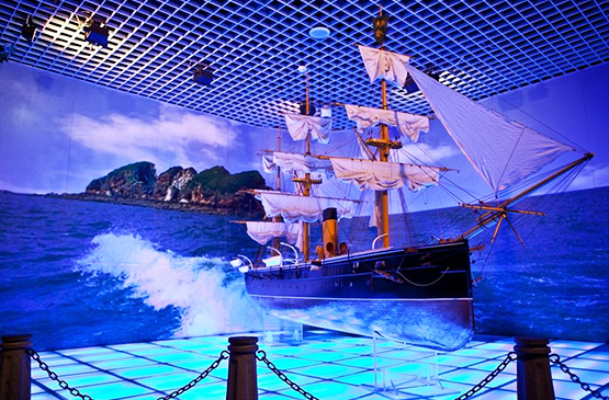【馬尾船政博物館】即大陸船政文化博物館,是大陸第一個以船政為主題的博物館。博物館依山而建,共有五層,館內陳列分為序廳、船政概覽廳、船政教育廳、船政工業廳、海軍根基廳、船政名人堂。博物館建築面積4100平方米,正面造型為兩艘乘風破浪的戰艦,氣勢磅礴。